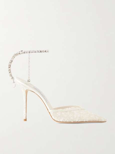 JIMMY CHOO حذاء بامب Saeda من نسيج شبكي بأقراص براقة مزين بالكريستال بكعب 100 مم