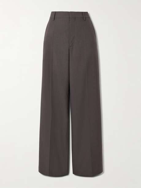 صُنع هذا البنطال بتوقيع JW Anderson من صوف غران دو بودر بقصة رسمية وتصميمٍ واسع الساقين مع كسرات حادة تُظهر القوام أطول. ارتديه مع البليزر المطابق أو مع إحدى الكنزات المريحة من العلامة لإطلالة أنيقة وعصرية.