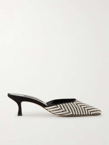 MANOLO BLAHNIK حذاء ميول Carolyne من نسيج النخيل المحبوك بلمعة معدنية مع حواف من جلد السويد بكعب 50 مم