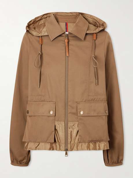 MONCLER جاكيت Adenium قصير من الغبردين بغطاء رأس وقطع محاكة بجانب بعضها البعض من الشبك
