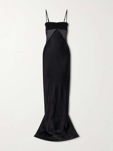 RICK OWENS فستان طويل من الساتان بقطع محاكة بجانب بعضها البعض من التول