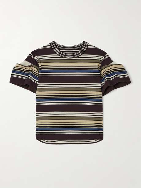 SACAI تي شيرت Piqué من القطن المضلع بثنيات وبقطع محاكة بجانب بعضها