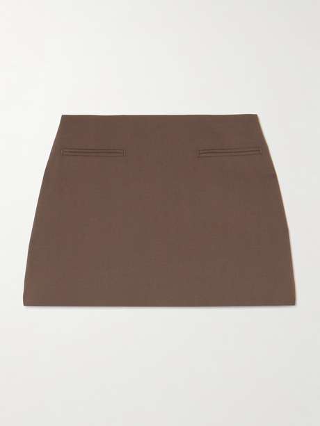 • صوف، وبوليستر، وفيسكوز وقماش LYCRA® بلون الشوكولاتة البنّي
