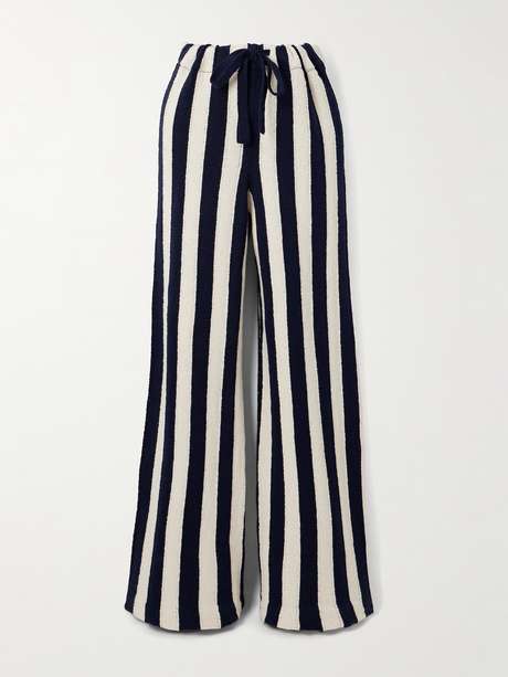 يُعتبر هذا البنطال من توقيع Elder Statesman سبباً قوياً لإضافة قطعة بطبعة خطوط بحرية إلى خزانة ملابسك. تمت حياكته من القطن بخطوط عمودية تطيل الساقين. ويتّسم بحزام خصر مزود برباط شدّ مما يجعل منه أيضاً خياراً مريحاً.