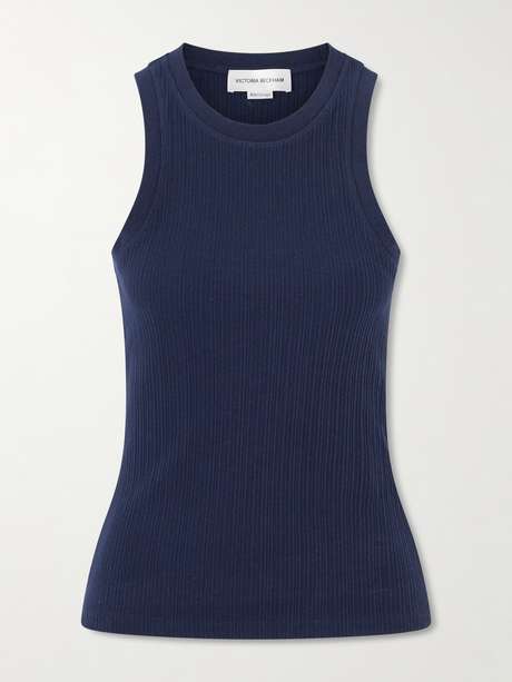 VICTORIA BECKHAM بلوزة بدون أكمام من قطن عضوي مطّاط ومضلّع