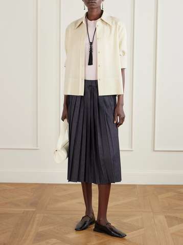 تنورة طويلة Godet من قطع محاكة بجانب بعضها البعض من الدنيم