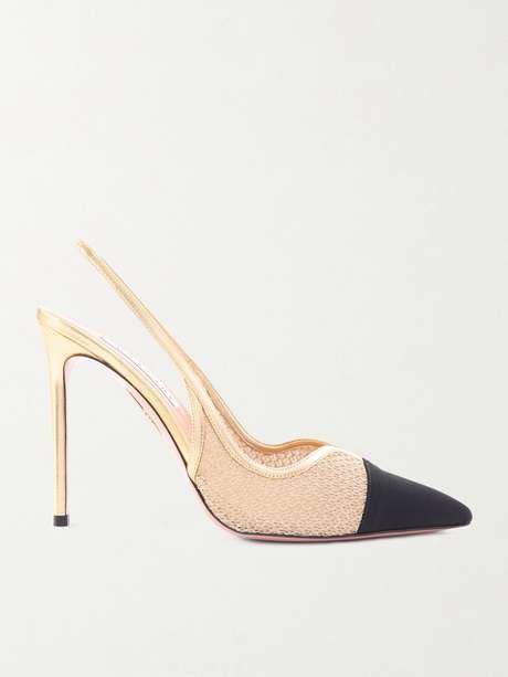 AQUAZZURA حذاء بامب Gia بحزام خلفي من نسيج شبكي ونسيج مضلّع بحواف من الجلد بكعب 105 مم
