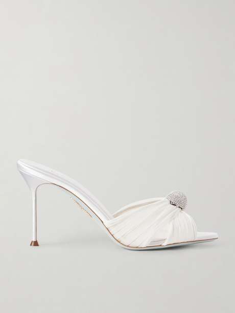 AQUAZZURA حذاء ميول Mystery القصير من الشيفون مزين بالخرز بكعب مقاس 85