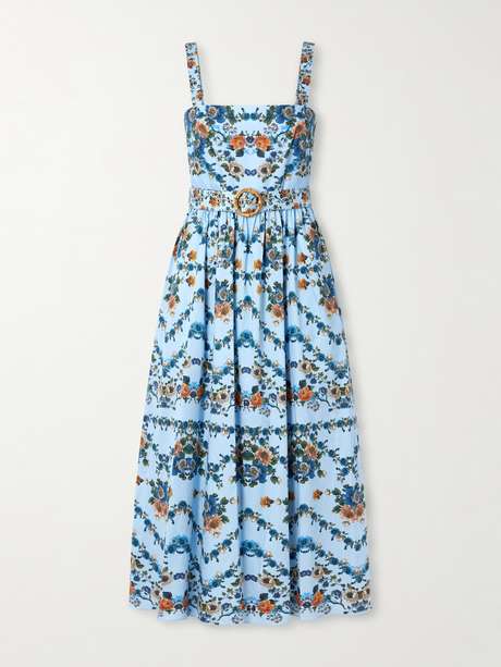 BORGO DE NOR فستان طويل Ninet من قماش البوبلين القطني بطبعات الأزهار مع حزام