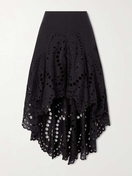 CHARO RUIZ تنورة Finn متوسّطة الطول من مزيج من القطن بتطريز إنكليزي