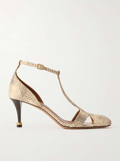 CHLOÉ حذاء بامب Cleia 70 من الجلد بنقشة جلد الأفعى مع كعب بارتفاع 70 مم