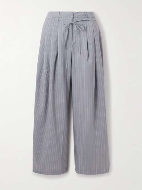 تقدّم Deiji Studios لمسة مسترخية على الطابع الكلاسيكي للبدلات من خلال هذا البنطال المصنوع من الصوف المخطّط. يمتاز بأرجل مستقيمة وقصة مسترخية تعززها طيّات أنيقة لتُبرز شكله الانسيابي. وهو يأتي مع حزام رفيع يمرّر عبر حلقات صغيرة أسفل الخصر.