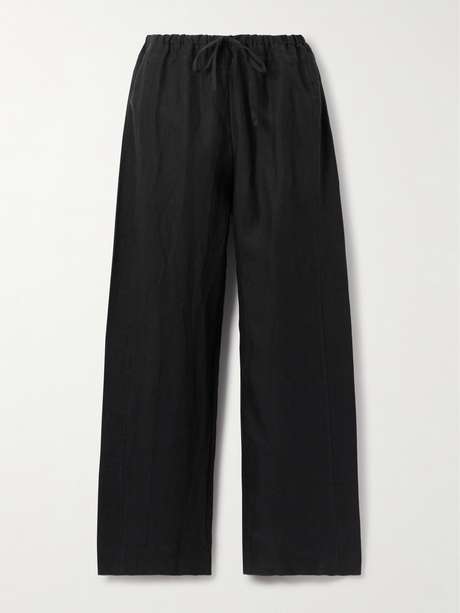 يمتزج في كل تصميم من Deiji Studios قدر من البساطة والرقي. صُنع هذا البنطال من كتان خفيف يسمح بمرور الهواء، ويمتاز بخصر مزموم مزوّد برباط شدّ مع درزة تُحدد منحنياتك وينسدل بانسيابية مع أرجل مستقيمة يلامس طولها الأرض. ارتديه عند استرخائك في المنزل أو لإطلالة مريحة وأنيقة لتناول الغداء.