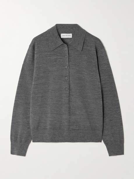 صُممت كنزة البولو هذه من توقيع Dries Van Noten بياقة مزودة بأزرار تصل إلى منتصف الصدر - مما يضفي إليها لمسة عصرية. صُنعت من صوف المارينو مع أزرار بلون متناغم وتتسم بحاشية مضلّعة لتحديد شكلها.