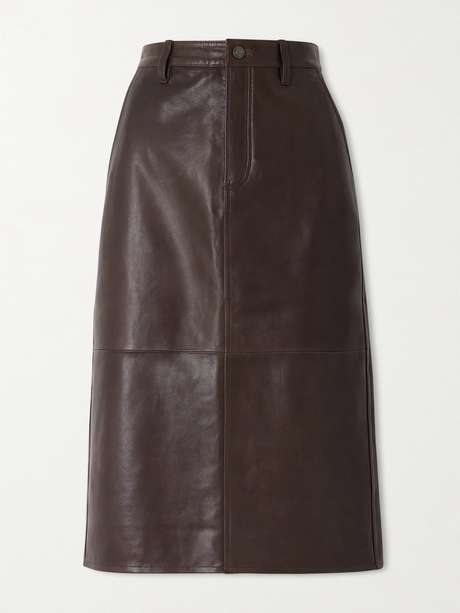 FRAME تنورة متوسطة الطول من قطع الجلد المحاكة بجانب بعضها البعض