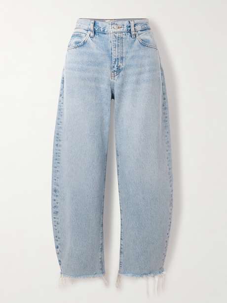 باتت بناطيل الجينز بالأرجل الواسعة رائجة منذ فترة، ويُعتبر جينز 'The Bubble' الذي يحمل توقيع FRAME من التصاميم المفضلة لدينا. صُمم ليزنّر أعلى الخصر وصُنع من الدنيم بلون 'Knock Out' ويتميز بحواف منسّلة.