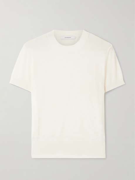 تقدم Givenchy هذا التي شيرت المثالي للأشهر الانتقالية، وهو مصنوع من كشمير ناعم عازل وخفيف الوزن. صُمم بقصة ضيقة وحاشية مضلعة ويتميز بياقة مستديرة كلاسيكية. نسّقيه منفرداً أو تحت بليزر.