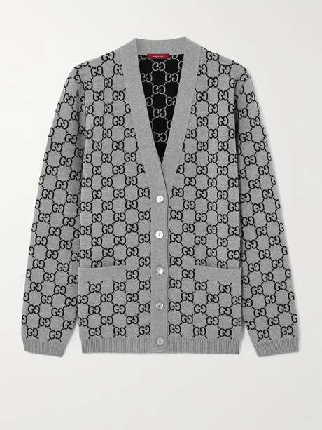 يتّسم هذا الكارديغان المحبوك بتقنية الجاكار من Gucci بشعار ’GG‘ الشهير من العلامة، الذي يمكنك إبرازه على الجهة المعاكسة أيضاً لأنه قابل للارتداء على الوجهين. صُنع من مزيجٍ من الصوف ويمتاز بجيبين أماميين. نسقيه مع كل ما يحلو لك من قطع بدءاً من التصاميم الرسمية وصولاً إلى بنطال جينز.