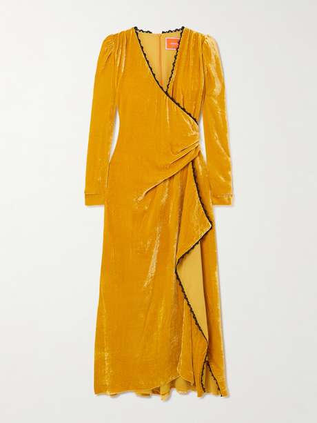 LA DOUBLEJ فستان طويل من الفيلور بتأثير ملفوف دارييه ومزين بحواف من الدانتيل