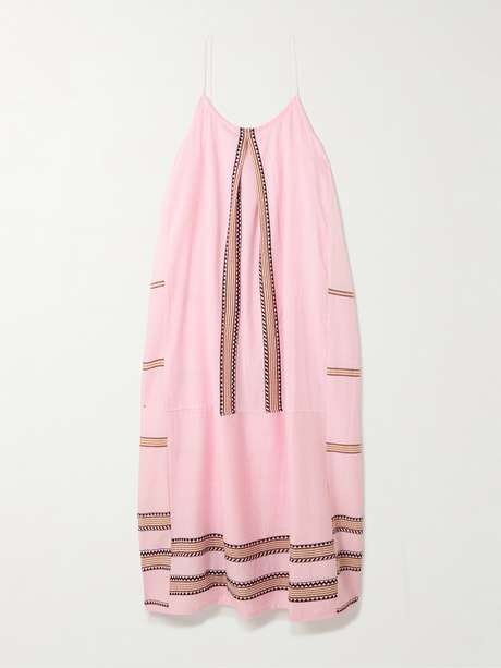 LEMLEM فستان متوسط الطول Nia بقطع قماشية محاكة بجانب بعضها البعض من مزيج من القطن المخطّط