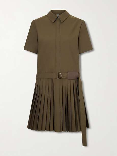 LOEWE فستان قصير بأسلوب القميص من مزيج القطن بكسرات مع حزام