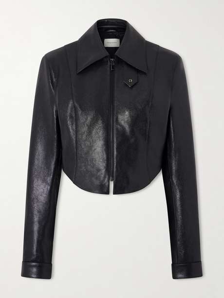 MAGDA BUTRYM جاكيت بايكر قصير بقطع من الجلد النافر واللامع