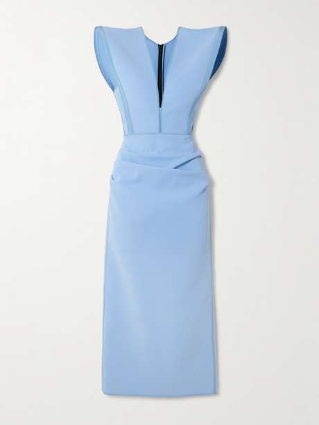 MATICEVSKI فستان Wingtip متوسط الطول من الكريب بتأثير درابيه