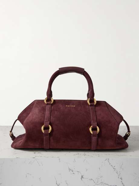قُدّمت حقيبة ’Farringdon‘ من McQueen للمرّة الأولى على منصات عروض الأزياء لخريف 2025، واسمها مستوحى من الحي التاريخي في لندن حيث يقع استوديو التصميم الخاص بالعلامة. وهي مصنوعة في إيطاليا من جلد السويد الفاخر ومزينة بتفاصيل معدنية ذهبية اللون وأحزمة جانبية قابلة للتعديل لتوسيع شكلها. يوفر لك جزؤها الداخلي مساحة واسعة لأغراضك الأساسية، بدءاً من هاتفك ومحفظتك وصولاً إلى كتابك الفضل.