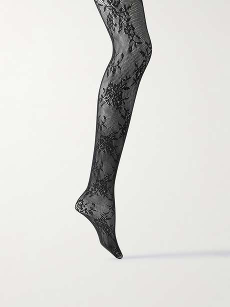 انسجمي مع صيحة هذا الموسم المستوحاة من أزياء اللانجري مع جوارب McQueen المزخرفة، المصنوعة من دانتيل مطاطي تتخلّله نقوش زهور متشابكة رقيقة. صُمّمت بخصر عالٍ يمنحها ثباتاً وأناقة، لتضيف لمسة رومانسية إلى التنانير الانسيابية والفساتين البسيطة.