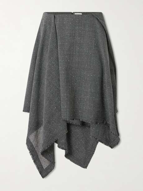 MCQUEEN تنورة متوسطة الطول من الصوف بنقشة Prince of Wales بقصّة غير متماثلة