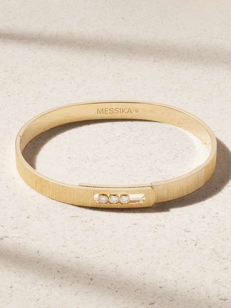 يعود سوار 'Move Noa' المميز من Messika بتحديث أنيق يعكس براعة الدار في التفاصيل، حيث يتميز بلمسة يدوية منحوتة تلتقط الضوء بأسلوب ساحر ولافت. صُنع يدوياً من الذهب عيار 18 قيراطاً ويزدان بـ 0.15 قيراط من الألماس المتلألئ الذي ينزلق بحرية داخل الفتحة البيضاوية الأيقونية، مما يضفي على المعصم لمسة أنثوية تنبض بالحركة والفخامة.