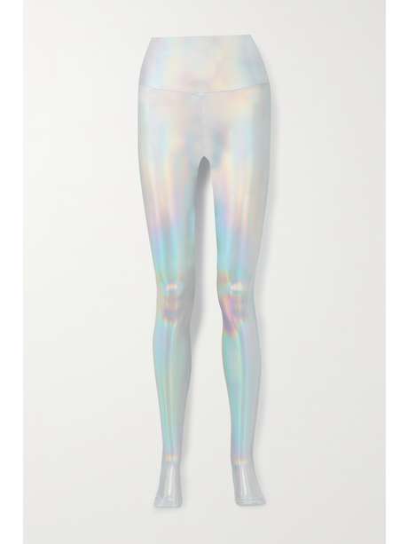 يتألق هذا الليغينغز المصنوع من الجيرسي المطاط من Norma Kamali بلمعة متقزّحة مميزة تتبدل ألوانها مع الضوء. يأتي بخصر عالي السرج ليبرز الجسم بشكل جميل وبفتحات عند الكعب يمكنك تمريرها فوق الحذاء. نسقيه مع البلوزة المطابقة.