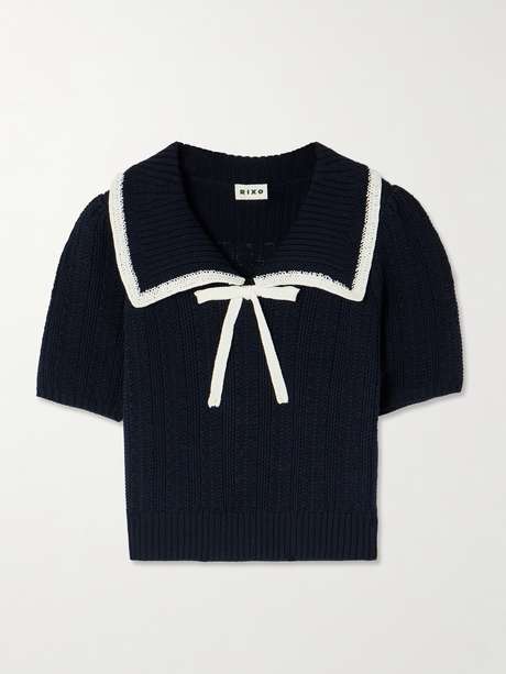 RIXO كنزة Pippa من القطن بلونين مزيّنة بربطة بشكل فراشة