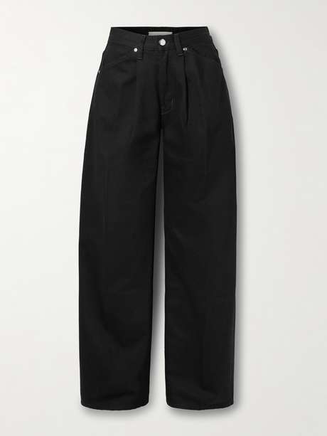 تقدّم علامة RÙADH جينز 'The Archer' المستوحى من الأزياء الرسمية والذي يتسم بكسرات حادة عند الخصر العالي لمنحه حجماً ناعماً. صُنع يدوياً في الولايات المتحدة الأمريكية من الدنيم الأسود الداكن ويأتي بأرجل واسعة. تشكّل حلقات الحزام الثلاثة عند الخلف سمةً من السمات التمييزية للدار.