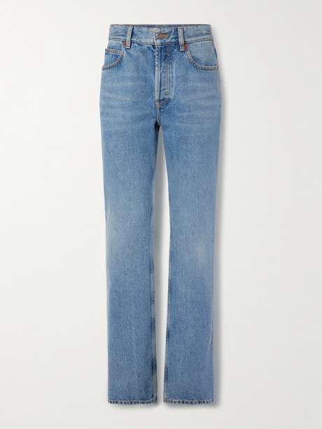 صُمّم بنطال الجينز هذا من SAINT LAURENT، المستوحى من بناطيل من التسعينات، بقصّة ضيقة وخصرٍ عالٍ مريح. وهو مصنوع من الدنيم الأزرق مع لمسات باهتة ويمتاز بحواف طويلة ستتناسق بشكلٍ رائع مع حذاء بامب.