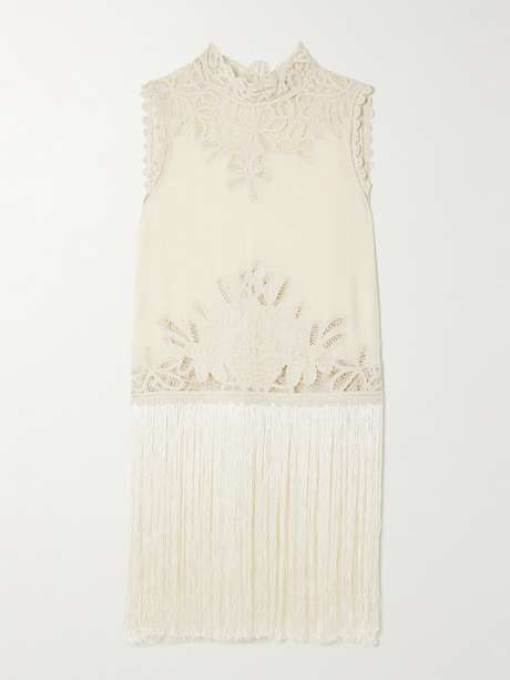 SEA بلوزة Adelina من نسيج محبوك بقطع محاكة بجانب بعضها البعض من الدانتيل بأربطة على الجانبين مزينة بشرّابات