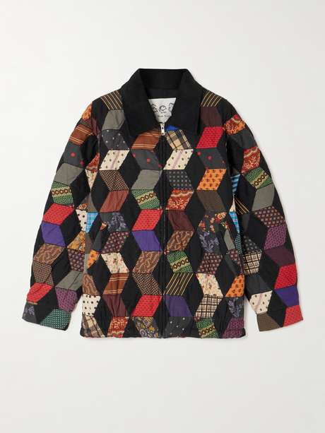 SEA جاكيت Cressida مبطّن من القطن بنمط الترقيع مع حواف من المخمل المضلع