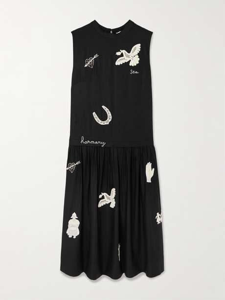 SEA فستان Ellison متوسّط الطول من التويل مطرّز