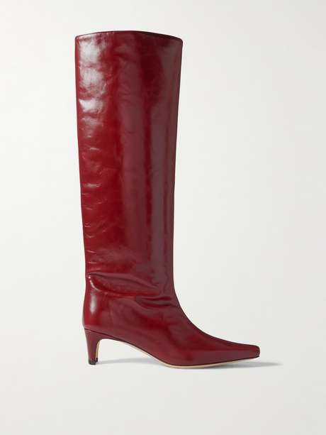 صُنع بوت 'Wally' هذا بطول الركبة من STAUD من الجلد اللامع بقصة مسترخية تتجمع قليلاً عند الكاحلين. يتميز بمقدمة طويلة مربعة الشكل وكعب رفيع بارتفاع 45 مم.