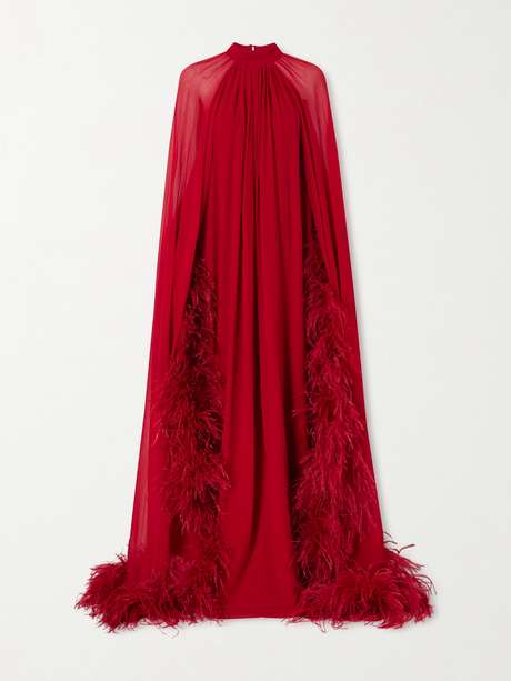 TALLER MARMO فستان سهرة Eterea من الشيفون بتصميم الكاب بحواف من الريش