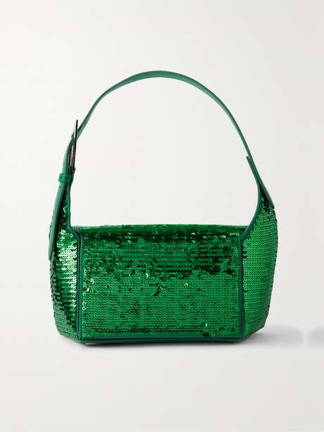 يمكنك دائماً اللجوء إلى The Attico للحصول على إكسسوارات بارزة ومؤثرة، كحقيبة الكتف '7/7' الجذابة هذه. فهي مصنوعة في إيطاليا من جلد متين مزين بأقراص براقة بلون أخضر مذهل وتتّسم بشكل هندسي يتّسع لكافة أغراضك الأساسية.