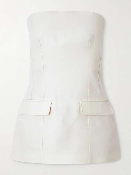 TOTEME بلوزة بوستيه بدون حمالات من الكريب من مزيج الحرير والصوف مزينة ببنسات