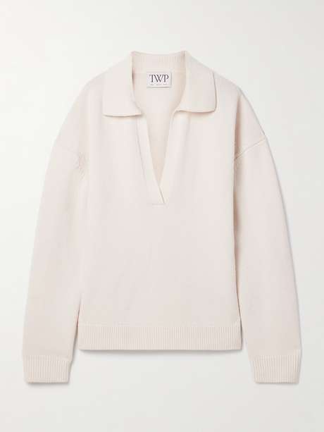 تُعدّ علامة TWP خبيرة في ابتكار ملابس أساسية أنيقة وبسيطة مثل كنزة البولو هذه. فهي محبوكة من الكشمير الفاخر، ومصمّمة بقصّة مسترخية تُبرزها درزات أكتاف منخفضة وفتحة عنق عميقة على شكل V. نسقيها مع كل القطع التي تحلو لك، بدءاً من بنطال جينز وصولاً إلى بناطيل من الجلد.