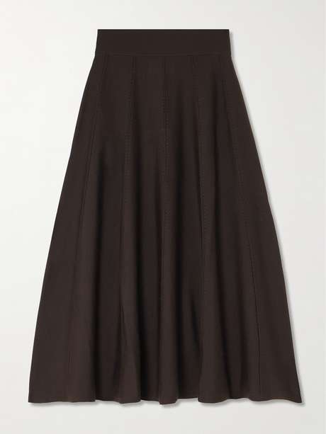 TWP تنورة Willow متوسطة الطول من مزيجٍ من الصوف المضلّع بقطع محاكة بجانب بعضها البعض