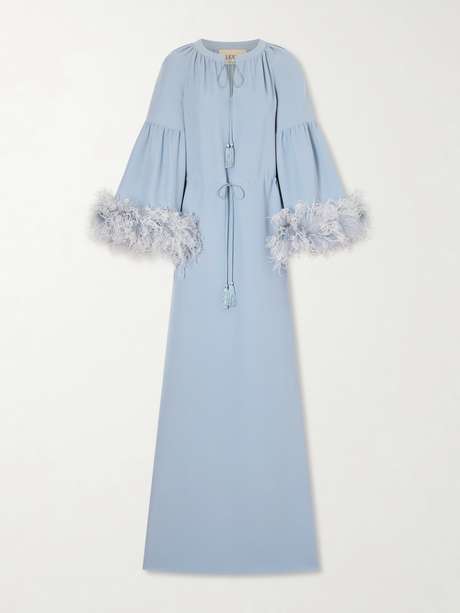 VALENTINO GARAVANI فستان سهرة من حرير الكريب بحواف من الريش