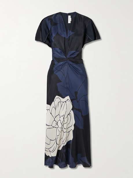 VICTORIA BECKHAM فستان متوسط الطول Eve بطبقات وبتأثير مزموم من الساتان بطبعة زهور