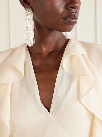 Asymmetrische Robe aus Crêpe aus einer Seidenmischung mit Kristallen