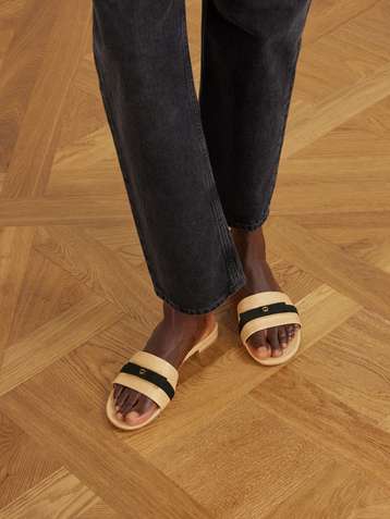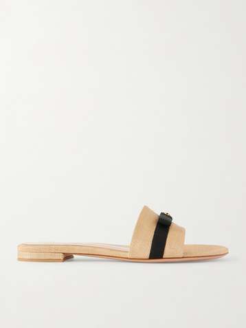 Pantoletten aus Raffiabast mit Ripsbandbesatz