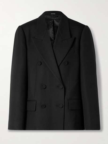 Dieser Blazer von Acne Studios beruht auf klassischer Herrenmode. Der Doppelreiher besteht aus Woll-Twill und ist neben einem steigenden Revers auch mit Schulterpolstern ausgestattet. Perfekt dazu passen eine Hose sowie High Heels in der gleichen Farbe.