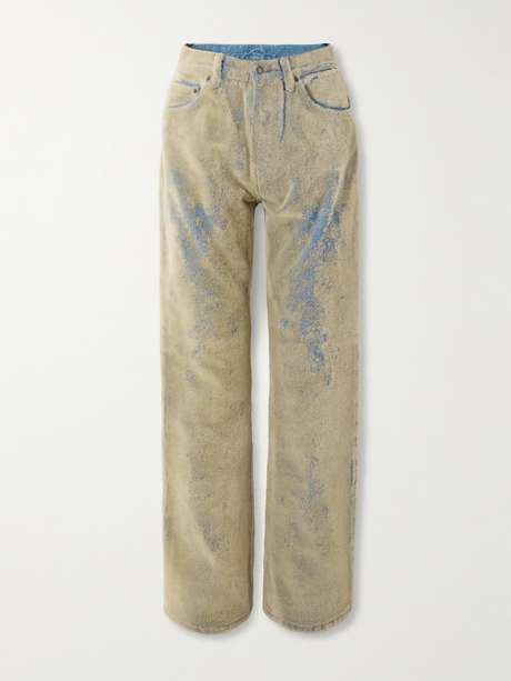 Diese Jeans von Acne Studios wurde beflockt, weshalb sie besonders ausgefallen wirkt. Das halbhohe, etwas locker geschnittene Modell mit geradem Bein hat dezente Falten und klassische Taschen.